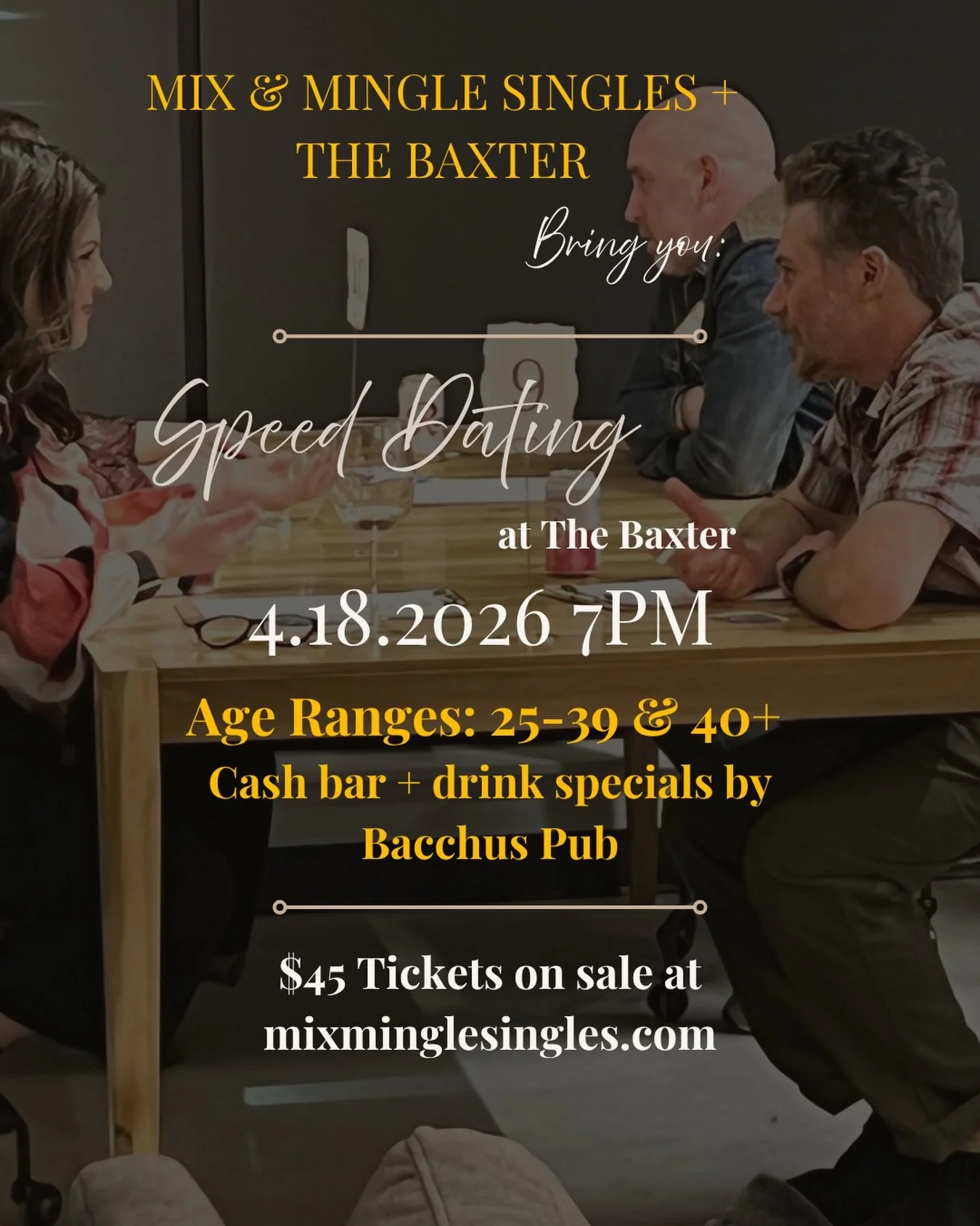 Speed Dating events are offered quarterly and usually sell out. Different age ranges each time.